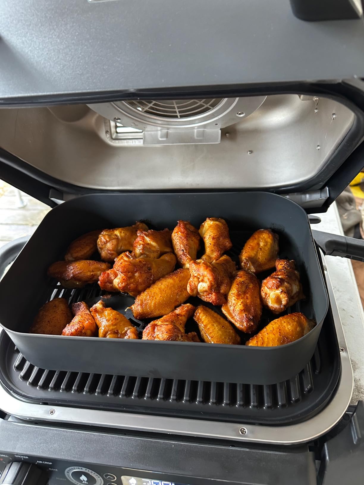 The air frying function was a pleasant surprise, producing crispy wings and fries that rivaled our indoor air fryer's results.