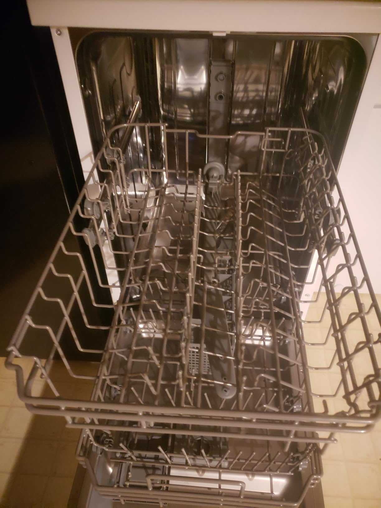 We did notice the upper rack could use more adjustment points, especially when loading taller glasses alongside regular dishes.