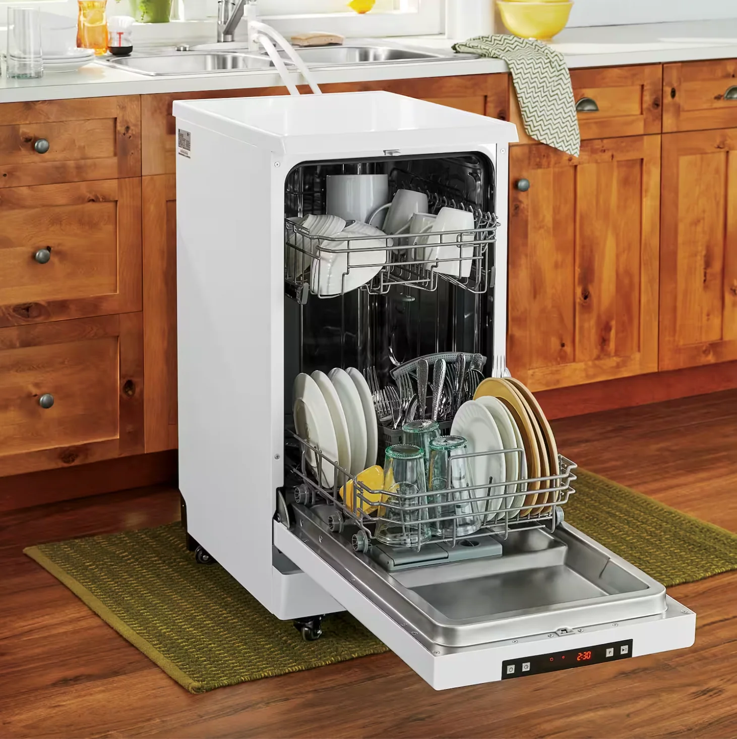 This compact cleaning companion measures just 18 inches wide while accommodating enough dishes for a family dinner or intimate gathering.