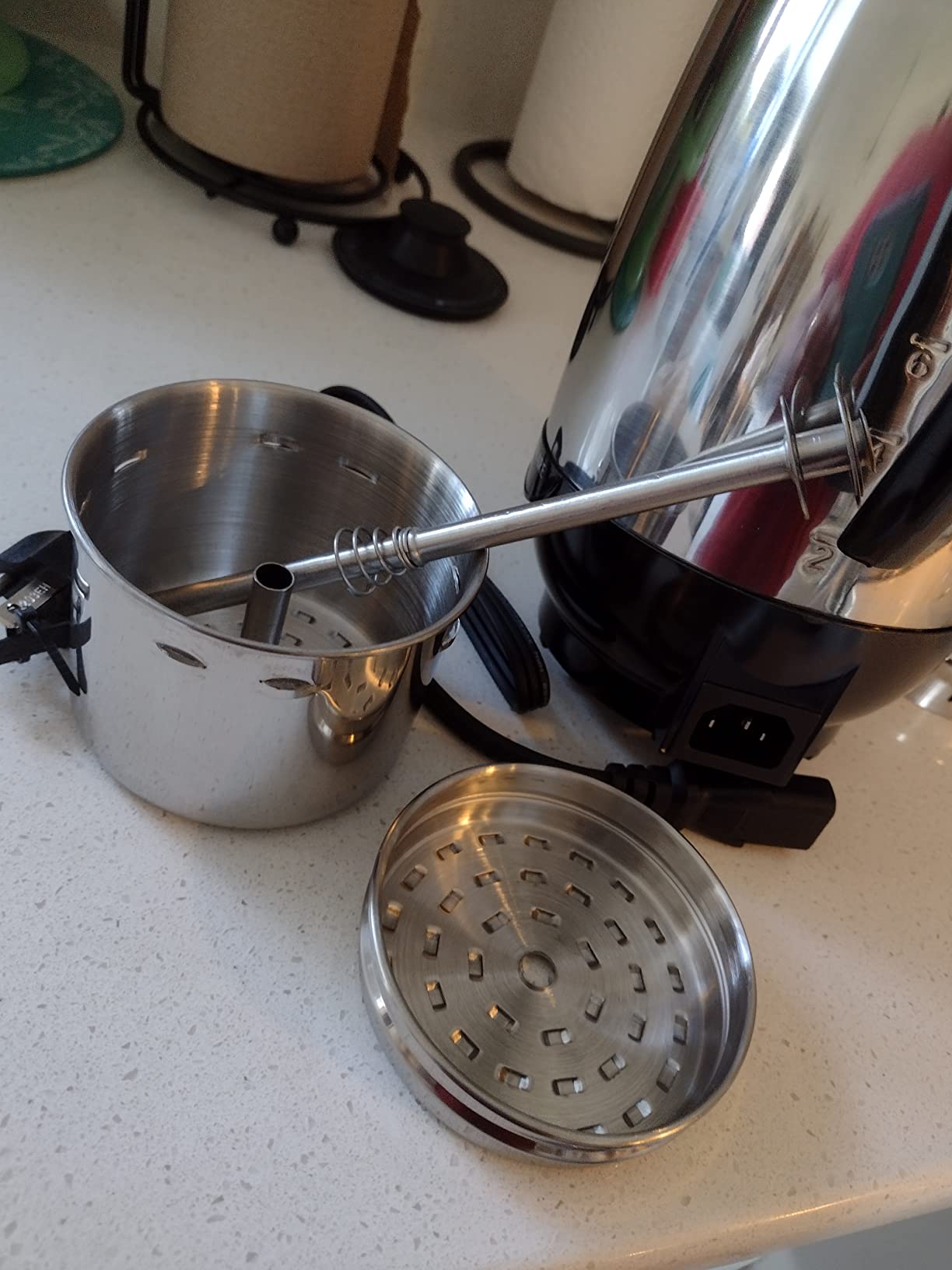 The percolator's stainless steel construction isn't just about aesthetics – our drop tests confirmed its ability to withstand daily wear and tear without denting or compromising functionality.