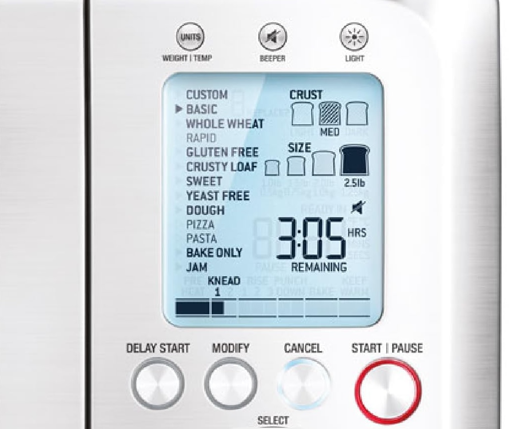 Experienced bakers will appreciate the custom recipe creator and ability to fine-tune every aspect of the baking cycle.