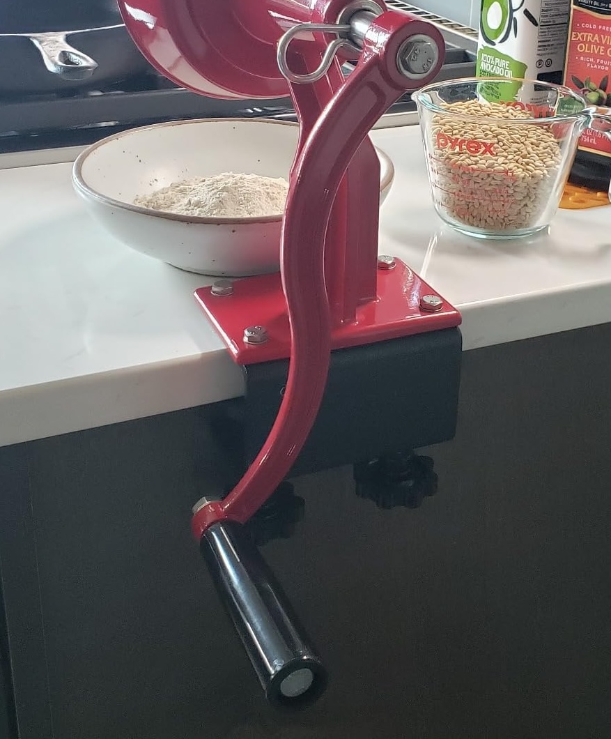 The first time I mounted it to our counter using the double-clamp system, I was impressed by how rock-solid it felt – no wobbling or shifting, even when cranking through tough wheat berries.