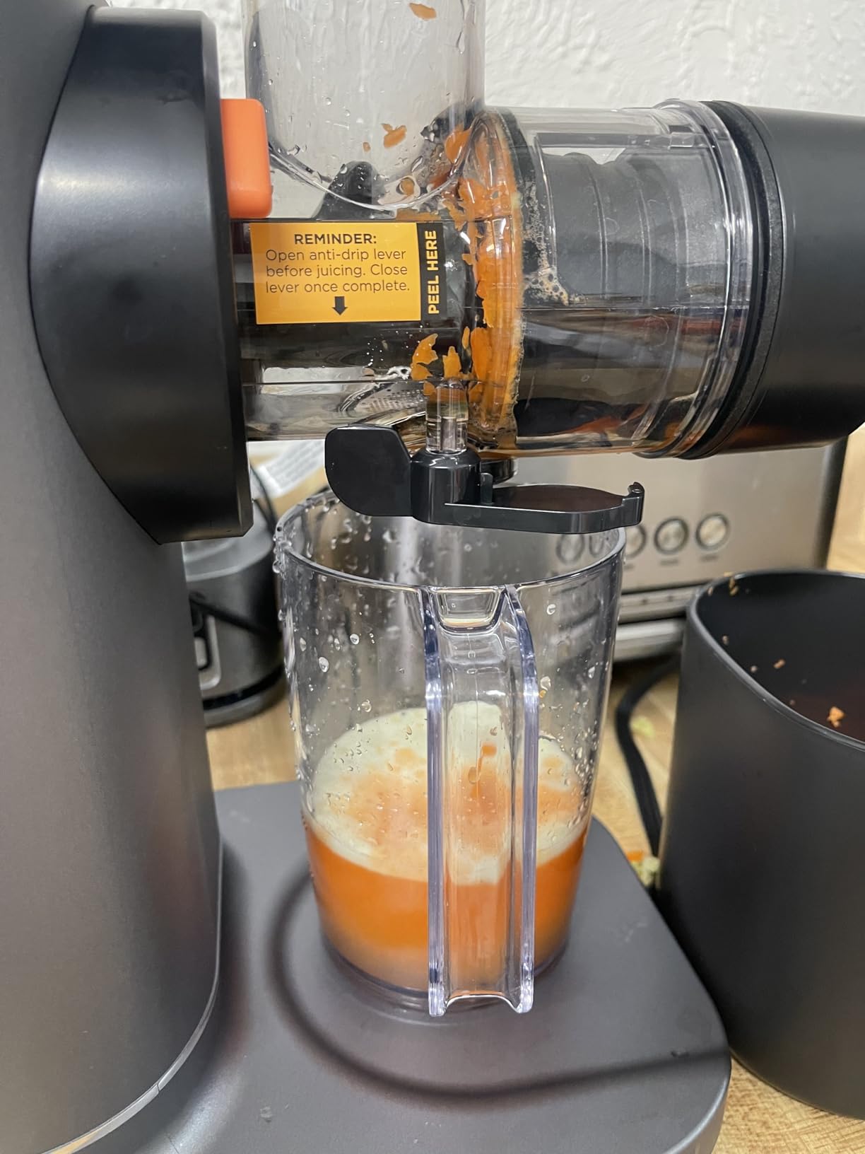 The anti-drip lever proved invaluable, eliminating the usual post-juicing counter cleanup that typically accompanies daily juice preparation.