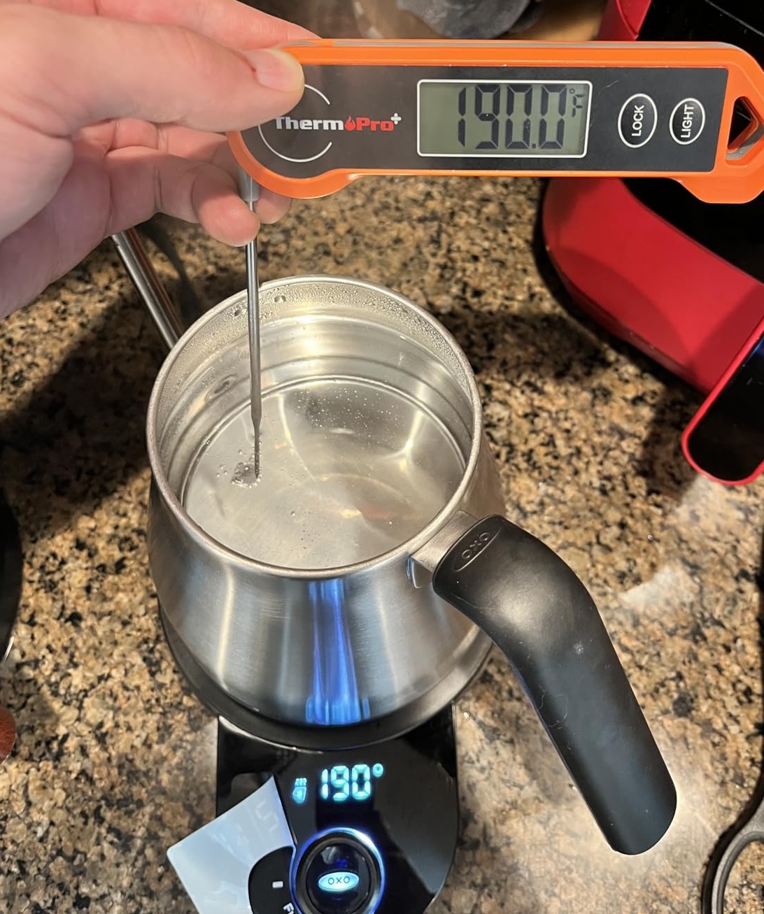 Real-time temperature tracking appears on the OLED display with minimal lag, a feature we found invaluable when cooling water down from boiling for more delicate brews.