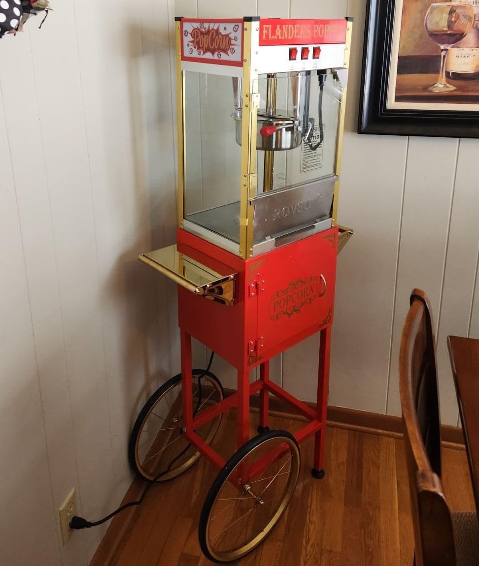 Enjoy fresh, delicious popcorn at home or during your next event with this easy-to-use machine and cart setup