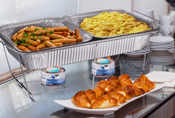 - ✅ Convenient Fuel Holders: Sturdy stands with easy-to-use fuel holders to keep food warm.