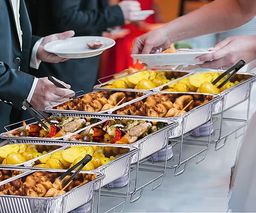 - ✅ Comprehensive Set: Includes chafing dishes, wire rack, foil pans, serving utensils, and chafing fuel cans.
