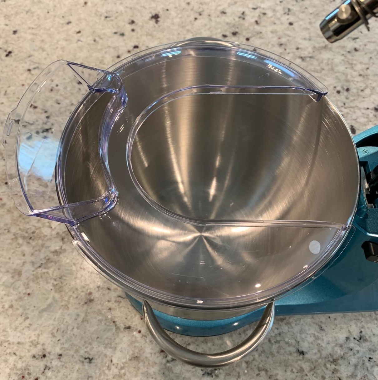 The splash guard became our best friend during a powdered sugar frosting incident, though we wish it had a slightly wider chute for adding ingredients.