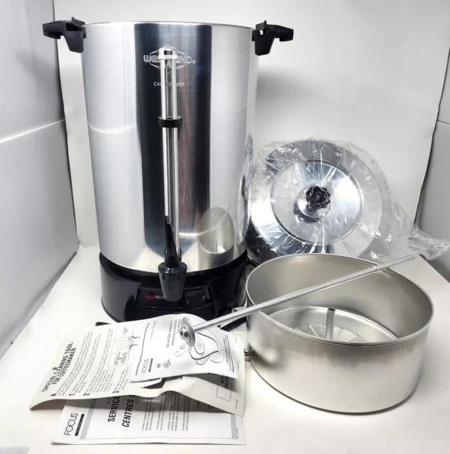 The included cleaning tool and detailed maintenance guide reflect West Bend's understanding of what matters to frequent users of high-volume coffee equipment.
