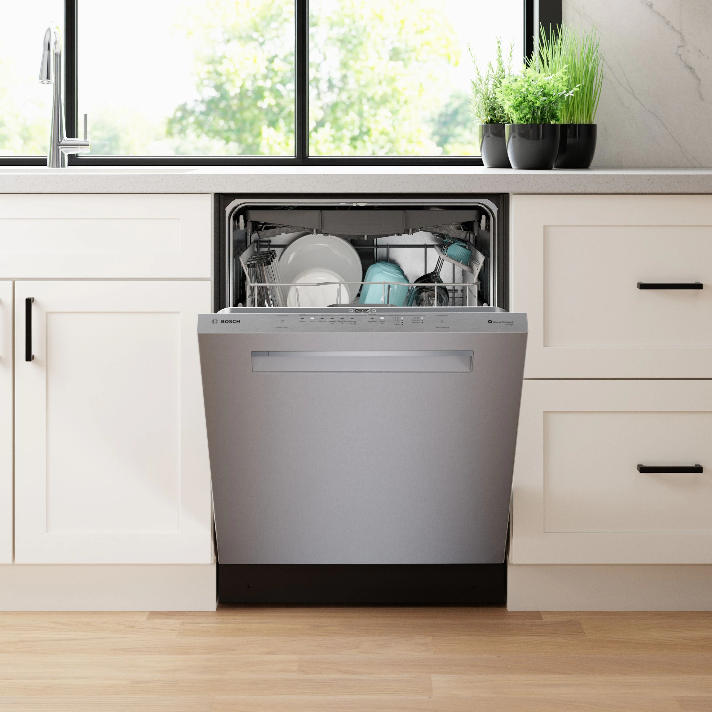 The integrated smart technology of this Bosch 500 Series transforms an everyday appliance into a sophisticated cleaning powerhouse that's ready for modern homes.