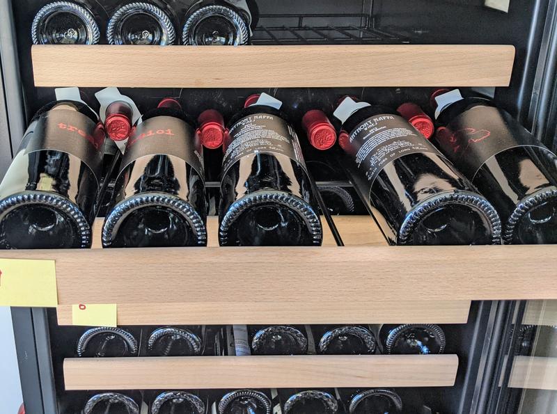 The adjustable wooden shelves handled everything from stubby Portuguese bottles to elongated German Rieslings without any configuration headaches.